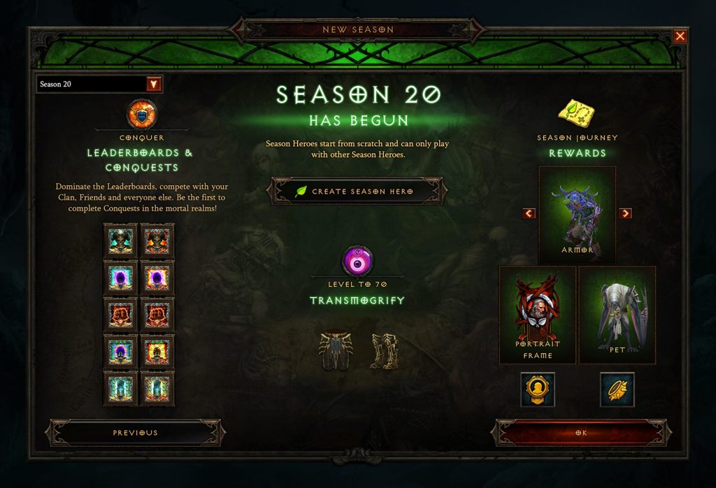 A temporada 20 do Diablo 3 chega dia 13 de março de 2020 as 22:00 horário de Brasilia e como de costume a Blizzard disponibilizou diversas novidades.