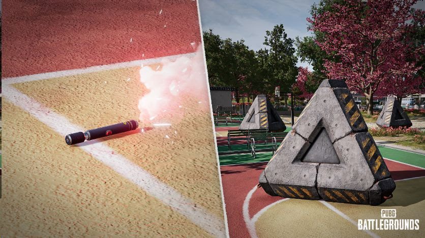 - Sinalizador de Cobertura de Emergência: Um arremessável que entrega uma boa defesa, o Sinalizador de Cobertura de Emergência emite uma fumaça vermelha que ativa a entrega de três blocos de concreto. Essas estruturas são pesadas o suficiente para quebrar bambus e cercas de madeira, e podem atingir jogadores na área de pouso. Cuidado!