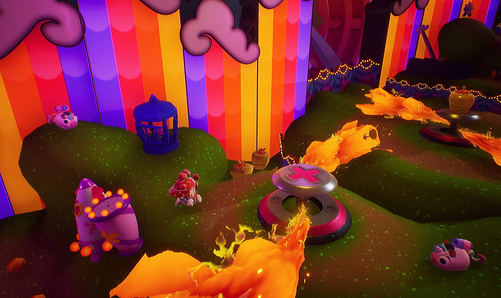 O segundo mundo é um lugar de néon muito fofo, onde seu animal de estimação é uma plataforma que você pode jogar. É um pouco estranho de usar, já que você realmente tem que carregar o animal o tempo todo, o que limita severamente sua mobilidade enquanto o segura. Ainda é bastante criativo, pois você o joga para usar como uma plataforma e pode pular em cima dele passando pela parte inferior. Inteligentemente, você pode usá-lo para balançar, além de poder ser lançado contra o solo para causar danos aos inimigos.