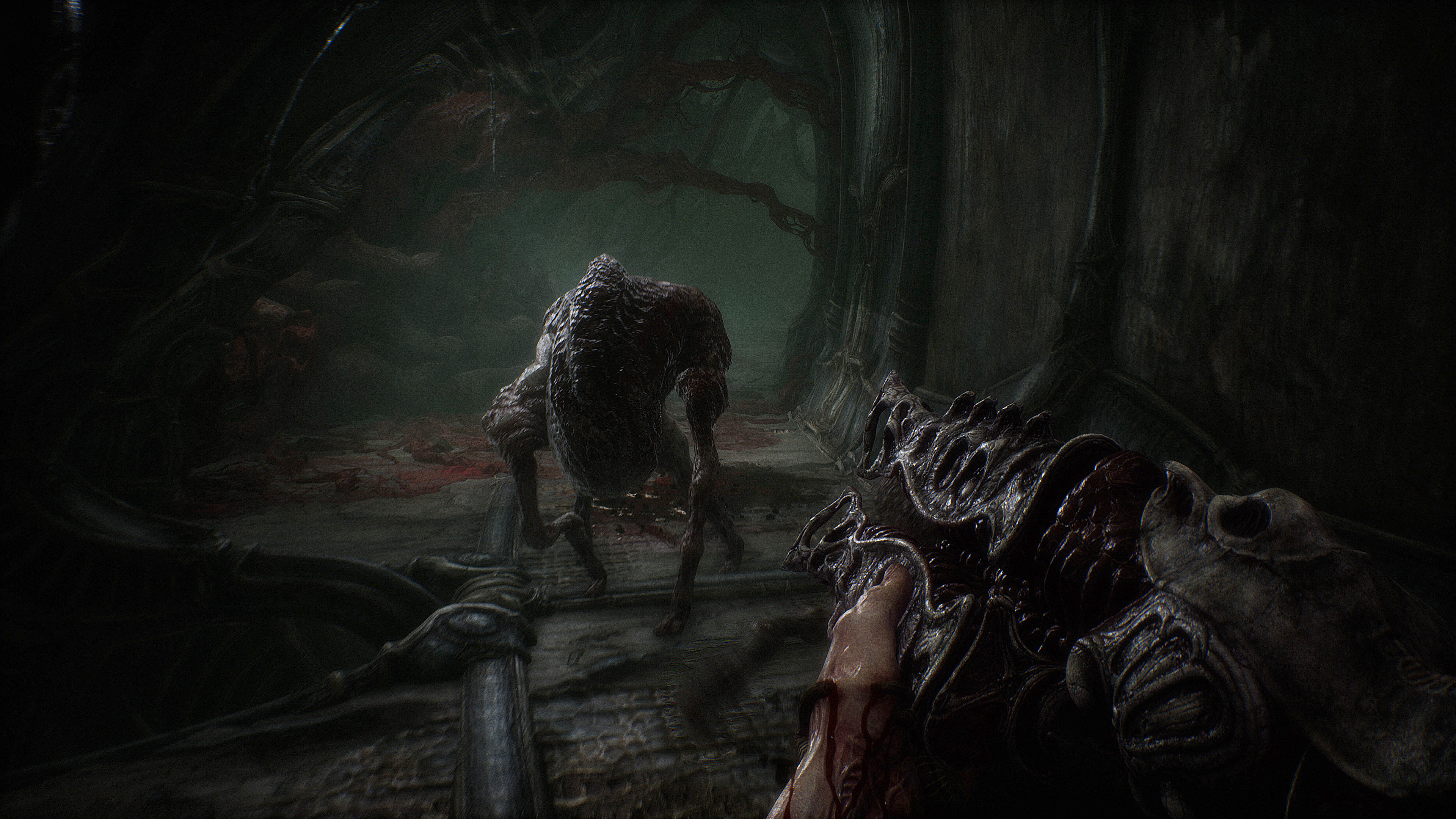 Torres carnudas envolvem o ambiente e a pele delas se desprende conforme o vento sopra pelos corredores vazios e cavernosos que você explora. Criaturas abrem seu peito e você observa enquanto se enterra profundamente, enquanto geme de dor. Se não for isso, você assiste enquanto várias criaturas são esmagadas até a morte em um liquidificador mecânico. O bombardeio constante de coisas sobrenaturais é muito para absorver.