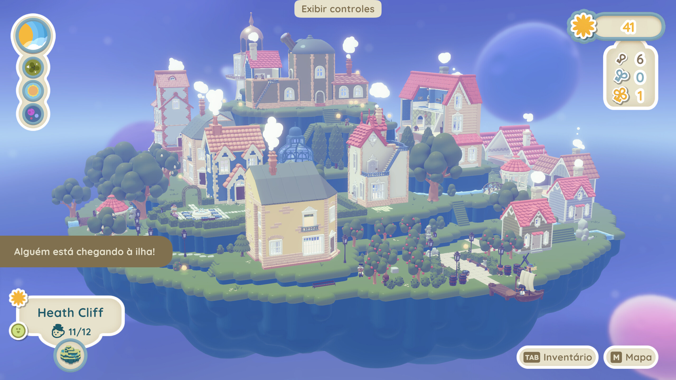 Vamos começar pelo que salta imediatamente aos olhos: os gráficos. A paleta de cores de Twinkleby é um espetáculo à parte. Tudo é vibrante, limpo e incrivelmente adorável. Os personagens, esses pequenos vizinhos que passeiam pelas ilhas flutuantes, são cheios de personalidade, com animações simples mas eficazes que transmitem suas emoções de forma clara. A interface do usuário (UI) segue essa mesma linha, sendo intuitiva e visualmente integrada ao mundo de fantasia do jogo. Não é uma experiência gráfica que vai exigir o último hardware do mercado, mas a direção de arte é tão competente que a estética se torna um dos pilares principais do jogo. Um ponto que poderia ser melhorado, no entanto, é a customização das casas. Embora seja possível decorar o interior, a parte externa, como a cor do telhado e das portas, é fixa, o que limita um pouco a expressividade do jogador na paisagem geral.