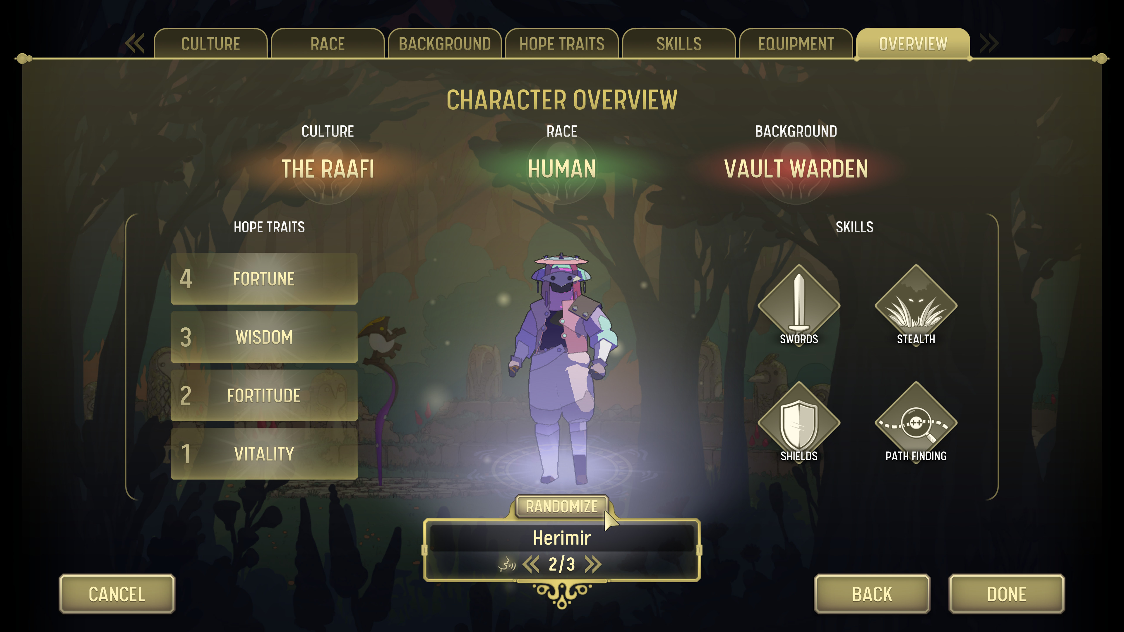 Apesar de seus elementos mais únicos, existem algumas semelhanças principais a serem encontradas com outras partes da cartilha de Roguelike, com a morte permanente sendo uma delas. Quando o jogador morre, é isso para aquele personagem em particular – eles se foram para sempre. No entanto, o jogador tem a opção de recomeçar com um novo personagem e seguir os passos do herói anterior, lembrando a implementação bem-sucedida desse sistema em Rogue Legacy.