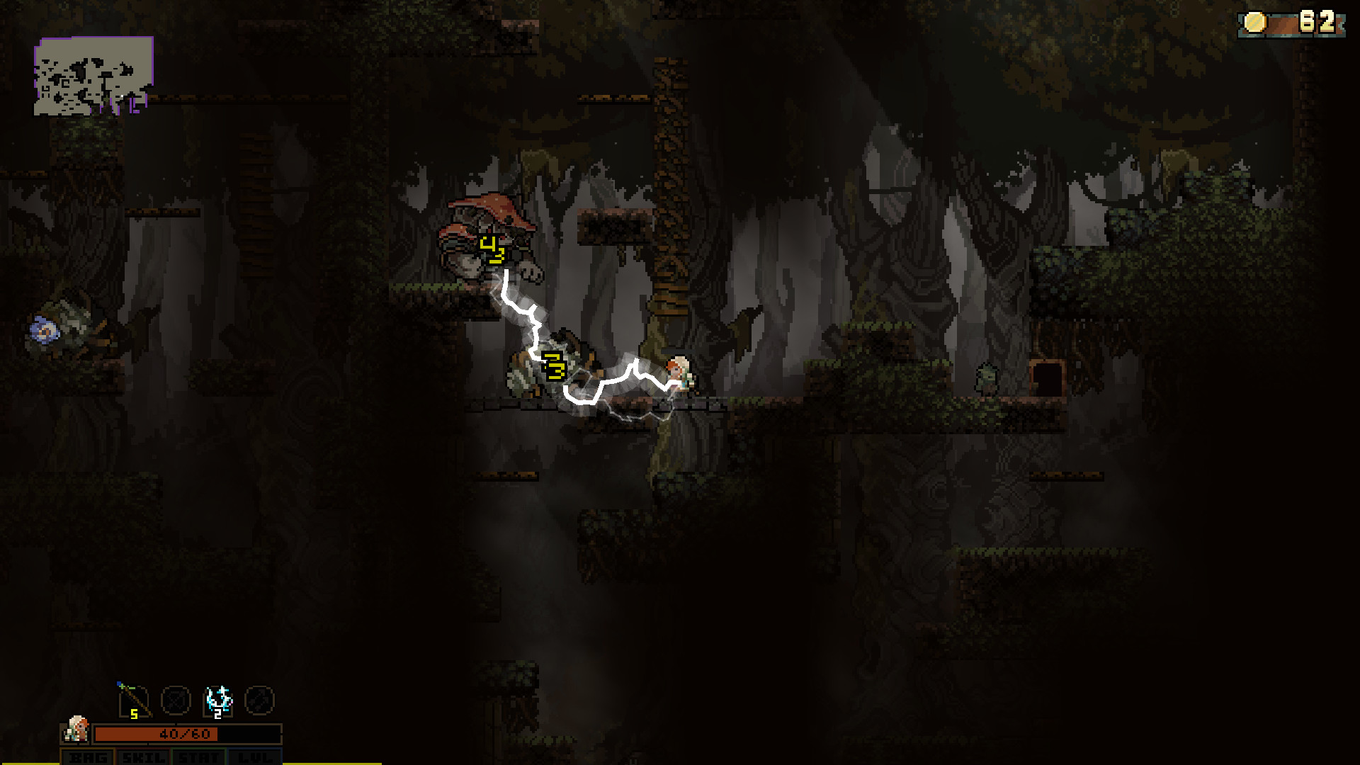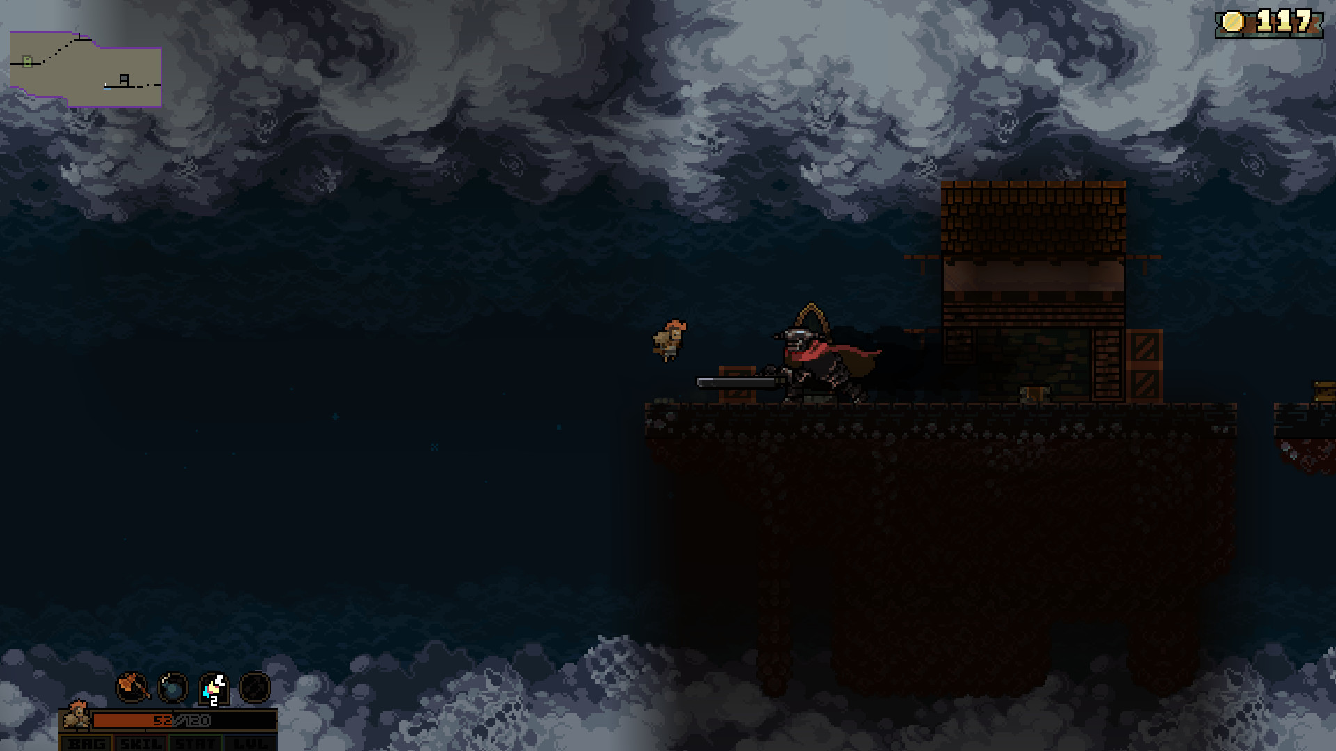 Os desenvolvedores claramente gostam da ideia de uma atmosfera mal-humorada e decadente, e é isso que Vagante oferece. No entanto, seu uso de cores sombrias e salas mal iluminadas dificultam a navegação. Isso é agravado ainda mais por causa do estilo de pixel art. Consequentemente, o nível de detalhe é bastante reduzido, o que dificulta a identificação de armadilhas e obstáculos. Infelizmente, esse problema torna um jogo difícil muito mais difícil, pois você cairá repetidamente em picos ou será atingido por flechas. Este problema poderia ter sido facilmente resolvido com uma melhor iluminação ou cores mais brilhantes, mas será que os jogadores mais hardcores concordam com isso?