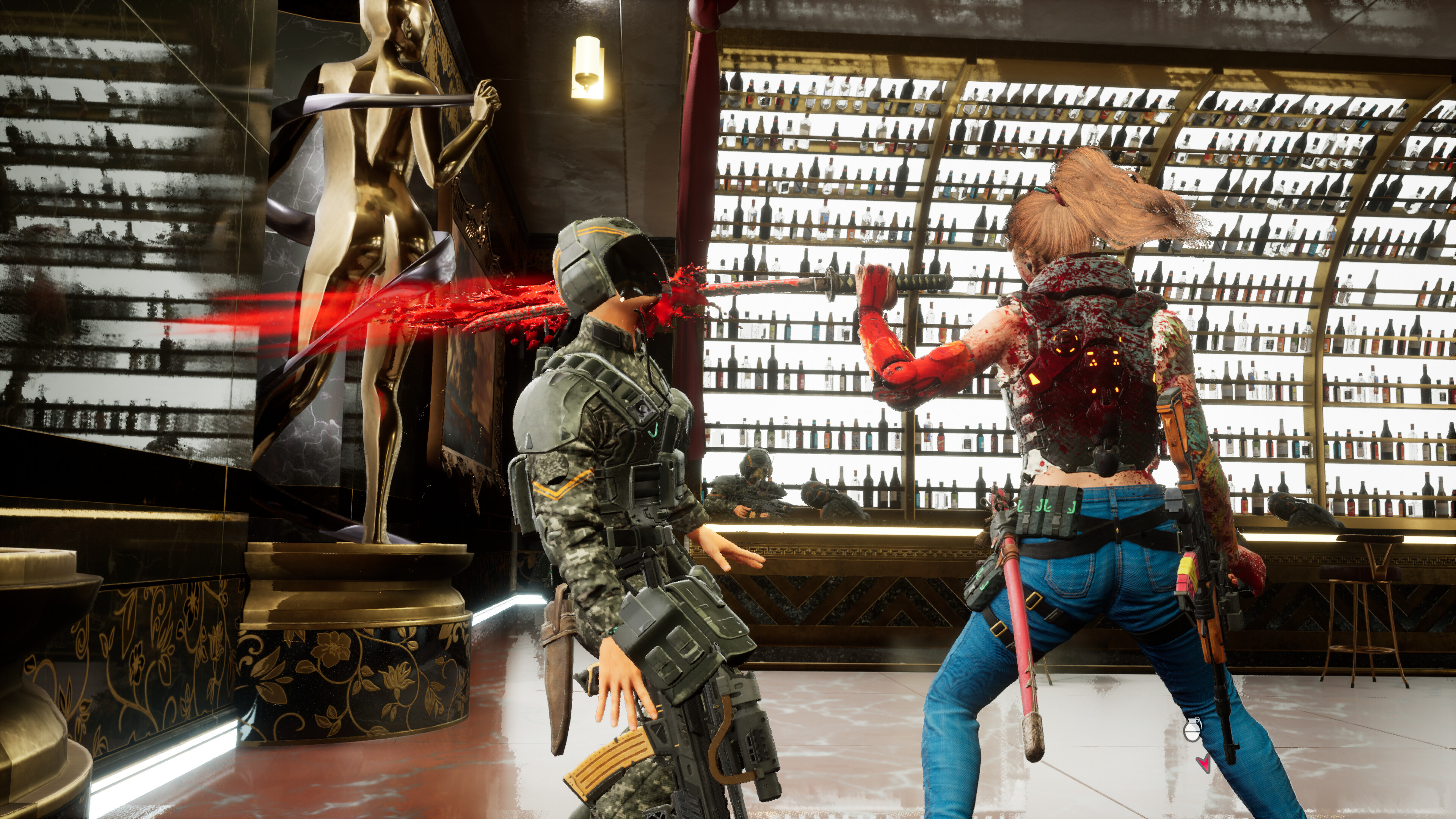 O visual de Wanted: Dead não irá impressioná-lo. Os ambientes são predominantemente monótonos e carecem de criatividade. Também não há muita variedade nos designs dos inimigos, nenhum dos quais parece particularmente bom. No entanto, Wanted: Dead tem estilo, com movimentos no estilo John Wick que realmente fazem você se sentir um fodão absoluto. Eles são brutais e estilosos de se olhar.