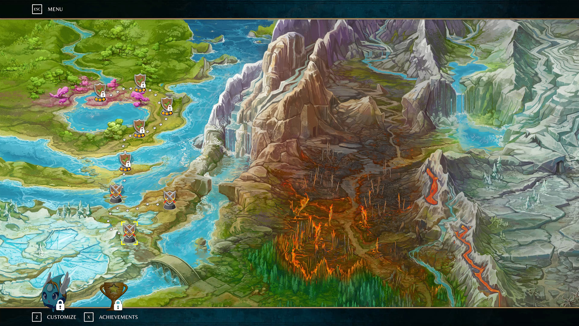 Aventure-se por regiões lindas e estilizadas como a Floresta Encantada, a assustadora Floresta Profunda e a tundra congelada das Montanhas Snowcap. Relaxe no mundo de maravilhas de Riftbound e, em seguida , prepare- se para batalhas contra chefes desafiadoras, mas justas, como o Troll gigante que vive na ponte. Descubra novos feitiços e evoluções Elementais em missões opcionais e até mesmo personalize a aparência dos Elementais com cosméticos, todos ganhos no jogo.