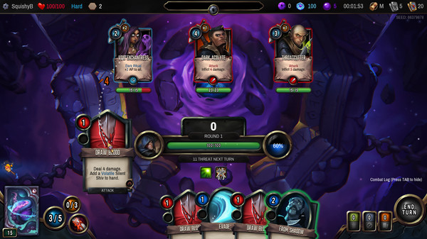 - Combate fluido e rápido . Qualquer cartão pode ser Purgado em energia. Combine isso com os feitiços mutáveis; o jogador está no controle total de todas as instâncias de combate, permitindo que eles criem combos ilimitados.